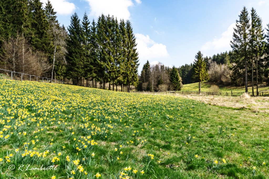 Le début du printemps est marqué par un événement naturel unique : la floraison des jonquilles sauvages. Ces fleurs jaunes transforment la vallée de la réserve naturelle de Holzwarche, une partie des Hautes Fagnes et la région de La Calamine, en une féérie dorée !
