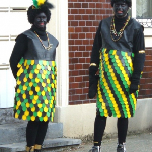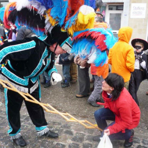 • 7 Lu Sâvadje-Cayèt est caractérisé par un costume recouvert de plaquettes de bois colorées s’entrechoquant au moindre mouvement.