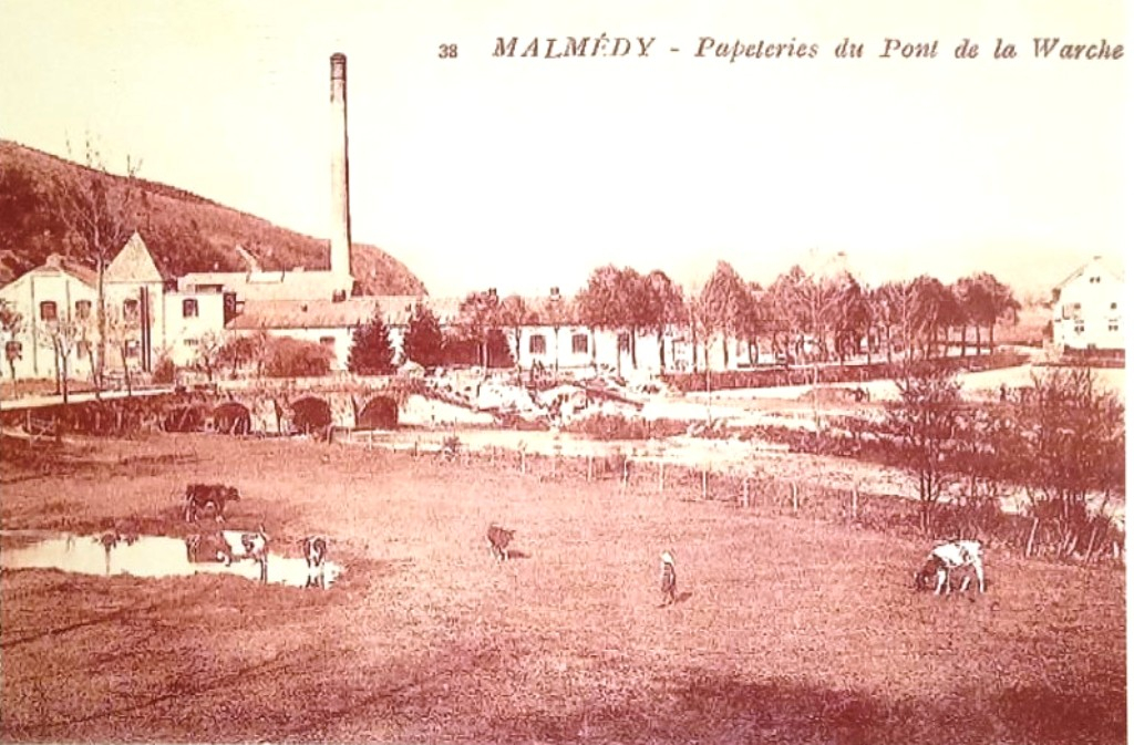 La nouvelle papeterie, au pont de Warche, est construite en 1910, avec une production de 5 tonnes de carton par jour. Elle sera mise à l’arrêt durant la Première Guerre mondiale (Malmedy était encore alors en Prusse).