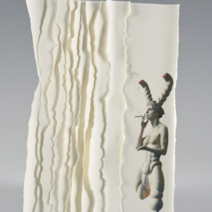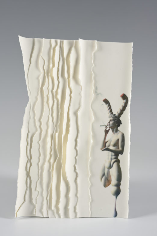 Fanny Bouyagui s’y promène pour imaginer des personnages hybrides, parfois dérangeants. Le dialogue entre l’artiste et la puissance du calcul informatique compose une série de divinités contemporaines inspirées des dieux et déesses antiques, le regard lointain dans des corps déformés et contorsionnés. De ce dialogue naissent aussi des visages. Ils évoquent les céramiques du XVIIè siècle.
