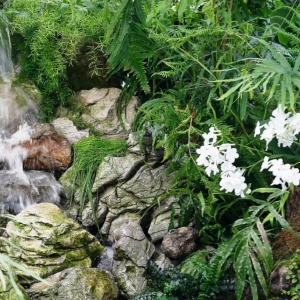 La promenade, pour la première fois aussi en extérieur, permettra aux visiteurs de découvrir des éléments architecturaux qui ornent les jardins, tels que les ruines d'un temple au bord d'un des étangs, la roseraie en arc de cercle et l'atelier de la reine Élisabeth.