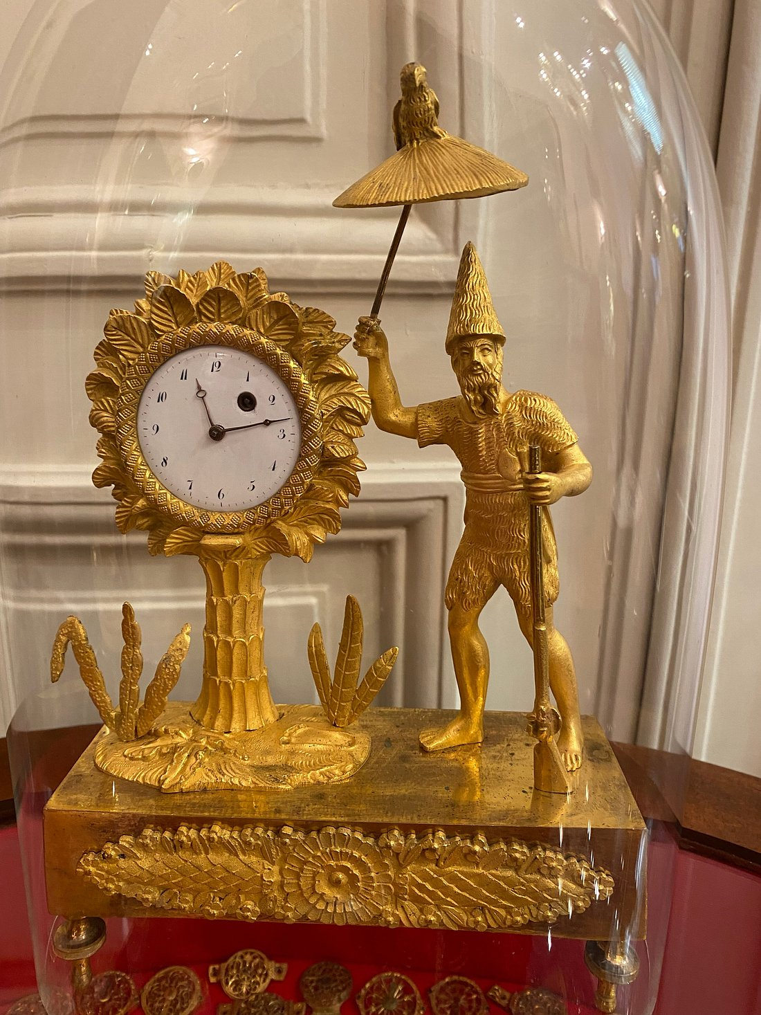Le mot « nègre » n’étant pas bien accepté, au XXIè siècle, notons que, au XVIIIè siècle, « les pendules décoratives les plus convoitées étaient dites ‘au nègre’, voire ‘au bon sauvage’, Jean François Deverberie (1764-1824), talentueux bronzier, exploitant remarquablement ce thème si prisé de l’exotisme« , ce que précise le catalogue du musée.