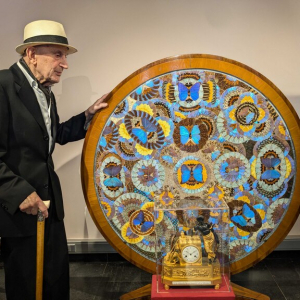 En fond de salle, une étonnante oeuvre décorée d’authentiques papillons brésiliens, qui, une fois repliée, constitue, en fait, une ravissante table ronde.