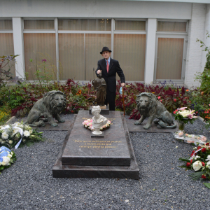 Quant à son parrain, fait « Chevalier de l’Ordre de Léopold », Dom Daniel Duesberg (André Duesberg/1902-1944), moine à l’abbaye de Maredsous, avant de devenir le fondateur et premier commandant de la « Légion Belge du Hainaut », lors de la seconde guerre mondiale. Ayant été emprisonné par les Nazis, il fut exécuté dans le camp de Gros-Rosen, une plaque commémorative étant exposée dans le musée, ce que le baron ne manqua pas de nous dévoiler, avec une grande émotion, avant qu’il ne nous dirige vers une fenêtre donnant sur le petit jardin du « Musée Duesberg », où repose son épouse, la baronne Betty Duesberg, sa sépulture nous présentant une importante épitaphe : « Celui qui se perd dans sa passion a moins perdu que celui qui perd sa passion », une maxime de Saint-Augustin, que le baron se plaît à rappeler régulièrement.