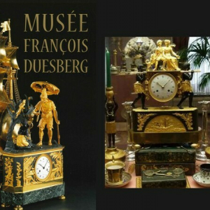 Vu le grand succès, en 1993, de leur exposition, présentant pendules dites « au nègre », intitulée « De Noir et d’Or », organisée à l’ « Hôtel particulier Bellevue », devenu le « Musée Bellevue », à Bruxelles, les époux Duesberg se mirent à la recherche d’un lieu d’exposition permanent. Notre capitale fédérale possédant déjà de nombreux musées, ils jetèrent leur dévolu sur Mons, où un ancien bâtiment de la « Banque Nationale » fut retenu, pour devenir l’écrin de leur prestigieuse collection privée. Le baron de préciser : « Mon épouse et moi étions des Bruxellois, d’origine liégeoise, mais nous voulions donner un nouvel attrait à Mons, moins favorisée que d’autres. Dès lors, nous lui avons donné cette collection. »