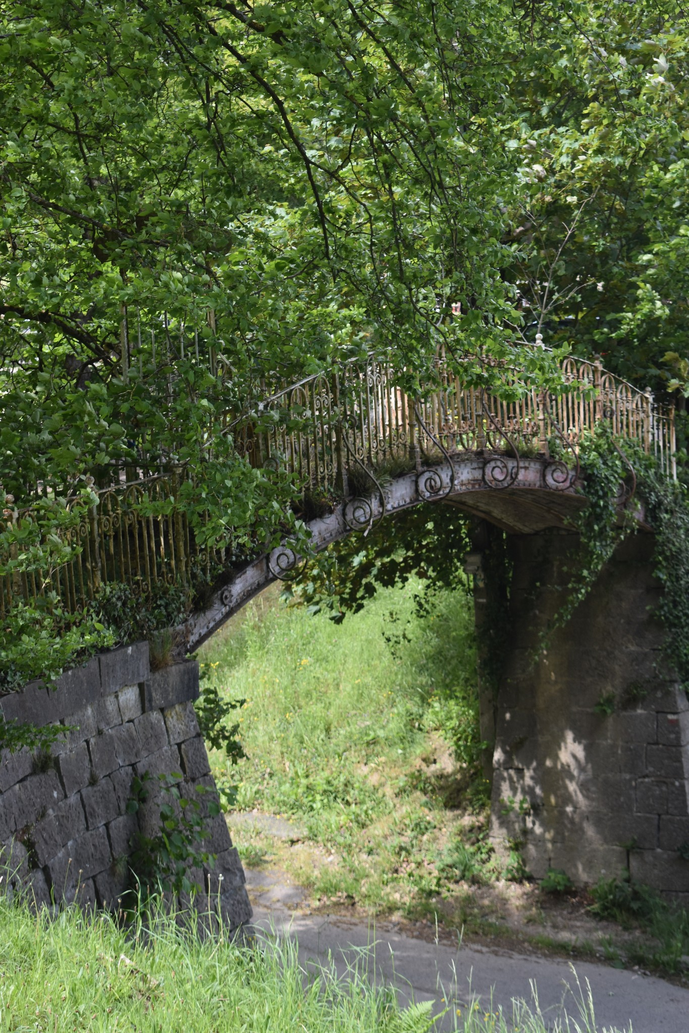 Le 19 avril 2017,notre collègue de « L’Avenir », Bruno Malter, écrivait : « Il a connu des heures plus fastueuses. Aujourd’hui, il cache difficilement le poids des ans. Ce petit pont en fer forgé, qui enjambe la rue des Canons, juste en face du ‘Parc attractif Reine Fabiola’ se trouve dans un état de délabrement avancé: quelques grosses pierres qui forment les épais piliers du pont se sont déjà détachées, entraînant partiellement des rambardes en fer forgé. La végétation a envahi le tablier, dont l’accès est barré par une barrière. Sous le pont, les briques de la voûte sont partiellement déjointoyées et les poutrelles de fer de la structure présentent d’inquiétants signes d’érosion. La Ville demande à la propriétaire de le restaurer ou de le démolir.«