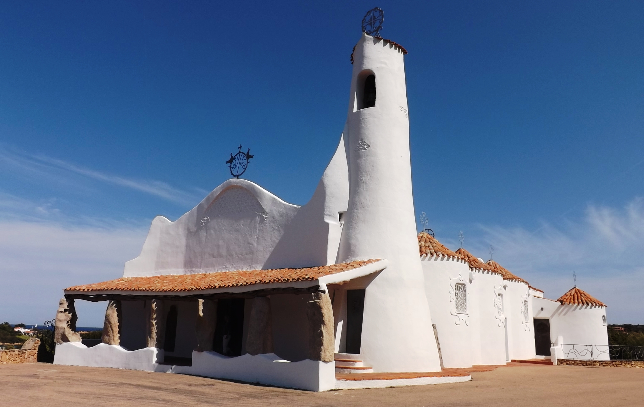 Si elle ne dénote absolument pas dans le paysage de Porto Cervo, l’église Stella Maris ( étoile de mer en latin ) déroge complètement de ce que l’on a ‘habitude de voir dans celui des édifices religieux. La pureté de sa blancheur e sa silhouette surréaliste captivent les regards. Elle a aussi été construite dans les années 60 par celui que l’on considéré comme le père de l’architecture méditerranéenne, Michele Busiri Vici, dans le cadre du programme de promotion immobilière d’Aga Khan IV. Perchée sur le bord d’une colline, elle domine la marina et offre une vue imprenable sur le golfe de Porto Cervo.