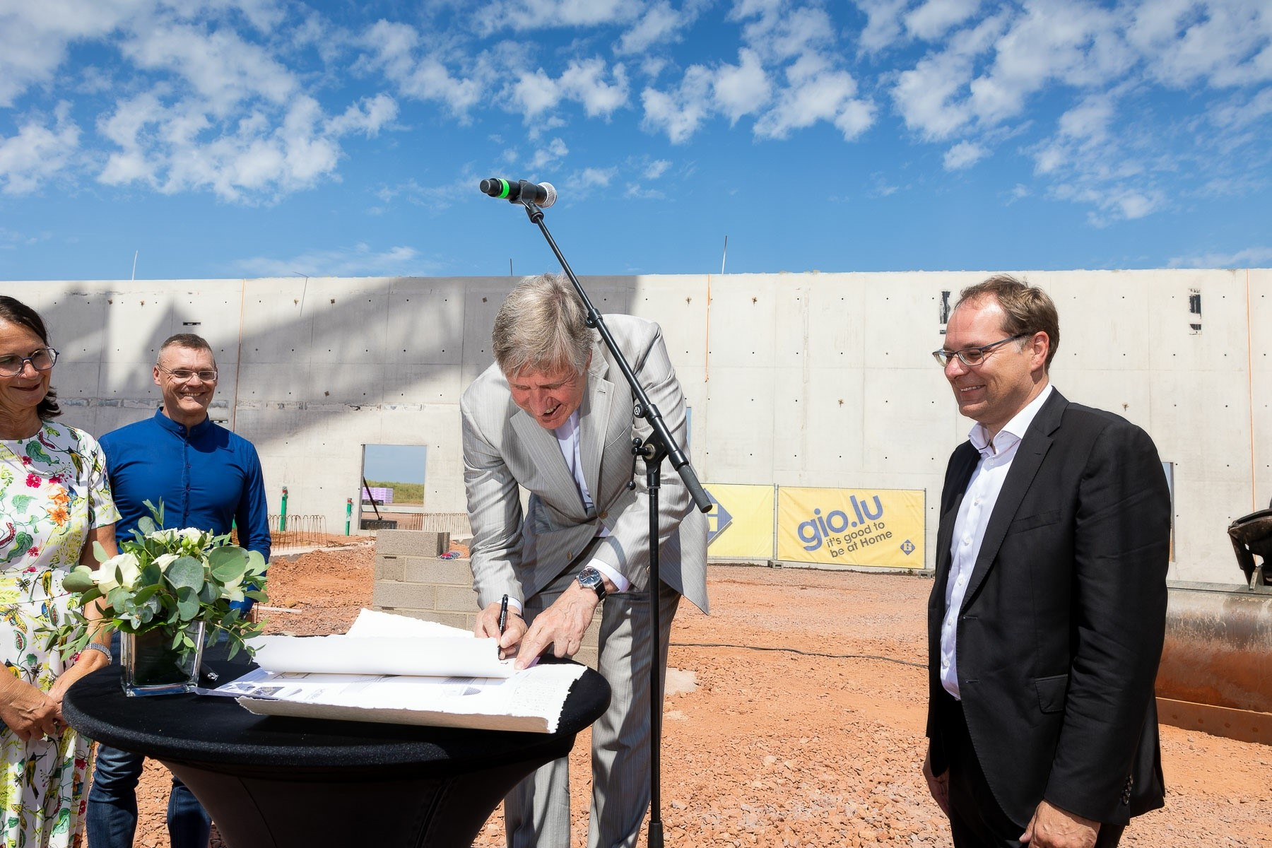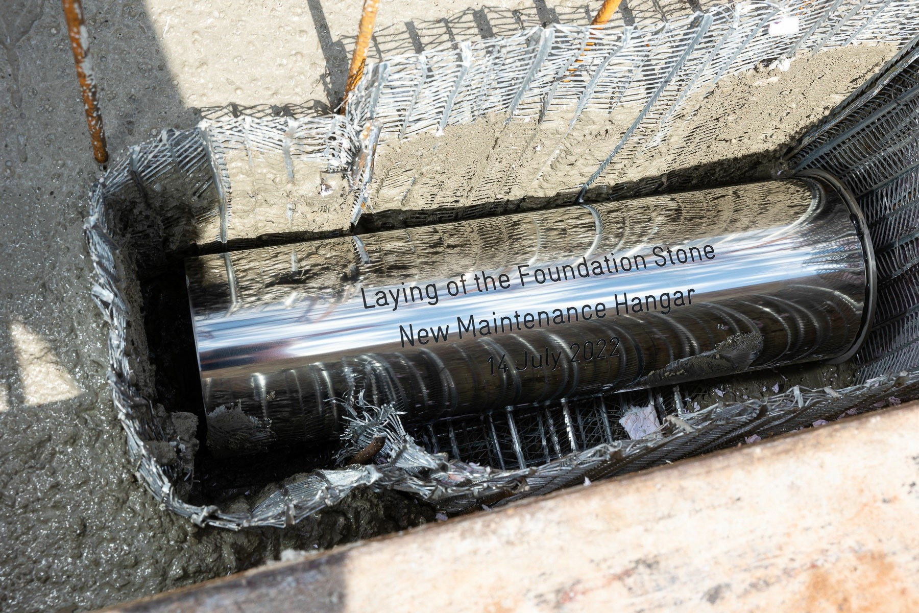 Pose de la première pierre du nouveau hangar de maintenance d'avions de Luxair
