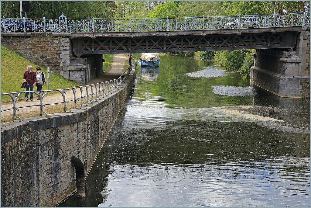 Il s'agissait de canaliser l'Ourthe. Arrive la révolution belge de 1830 qui stoppa le projet. Les Belges reprirent le projet en créant un canal plus ou moins parallèle à l'Ourthe. On peut découvrir d'anciens tronçons de ce canal entre la Meuse et Chênée, du côté de Streupas, en dessous du château de Colonster, le long du ravel de l'Ourthe, du côté d'Esneux, un peu loin que Poulseur. Nous empruntons la passerelle du viaduc ferroviaire du Val Benoit pour nous diriger vers le haut de Cointe en part le nouveau pont au dessus du chemin de fer et de la route se dirigeant vers Sclessin. Par un sentier méconnu des Liégeois, en sous bois, nous montons la Rue des Cailloux jusqu'au mémorial interallié de Cointe. La Rue des Cailloux, pour tous les randonneurs parcourant les nombreux sentiers de grande randonnée en Belgique et à l'étranger comme la France par exemple, fait référence aux Frères Cailloux, fondateurs du réseau belge en 1959.