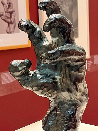 Soulignons la présence expressive d’une série de mains, certaines réalisées en marbre, comme « La Main de Dieu Dieu » (1898-1902), d’Auguste Rodin, d’autres fondues en bronze, comme la « Main désespérée » (1900) d’Antoine Bourdelle.