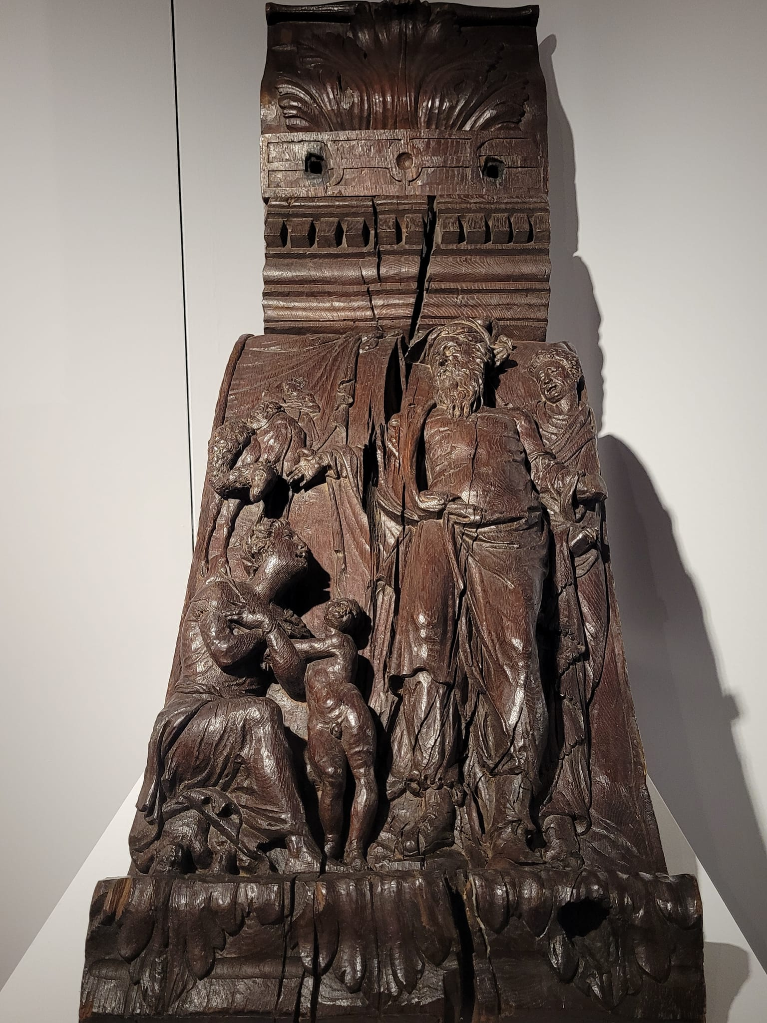 Si un grand nombre d'oeuvres exposées proviennent de la Province de Namur, notons que l'historien de l'art Michel Lefftz (°1962), commissaire de cette intéressante exposition namuroise s'est intéressé aux stalles du Chœur des Dames, de la collégiale Sainte-Gertrude, à Nivelles, point de départ des recherches sur le maniérisme en terres mosanes.