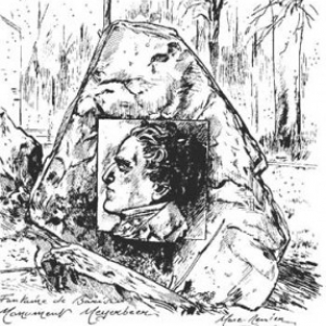 La stèle (portrait de Meyerbeer) apposée sur un rocher derrière la source de Barisart à l’entrée de la promenade.