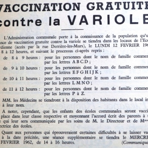 Si, au bout du compte, le Cwarmê aura bien eu lieu le 29 avril 1962 avec la parade habituelle – en présence d’une délégation de Beaune – on ne peut s’empêcher de faire un parallèle avec la situation actuelle : manque à gagner pour les indépendants – rien ne fut décidé pour dédommager ou simplement aider les commerçants victimes des restrictions –, fermetures de frontières et campagnes publiques de vaccination dont les médias faisaient la publicité.