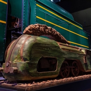 Sur une scénographie de François Schuiten, par ailleurs scénographe de ce musée « TrainWorld », Pierre Marcolini – présent depuis 1995 au Sablon, ayant des magasins à Hawaï, Shangai, Tokyo,… – et Dominique Persoone – présent depuis 1992 à Bruges et 2010 à Anvers – ont unis leurs talents de chocolatiers pour nous proposer une exposition originale, intitulée « Choco Loco », qui vous l’aurez compris, met en valeur le chocolat belge, grâce à des sculptures en chocolat des plus réussies.