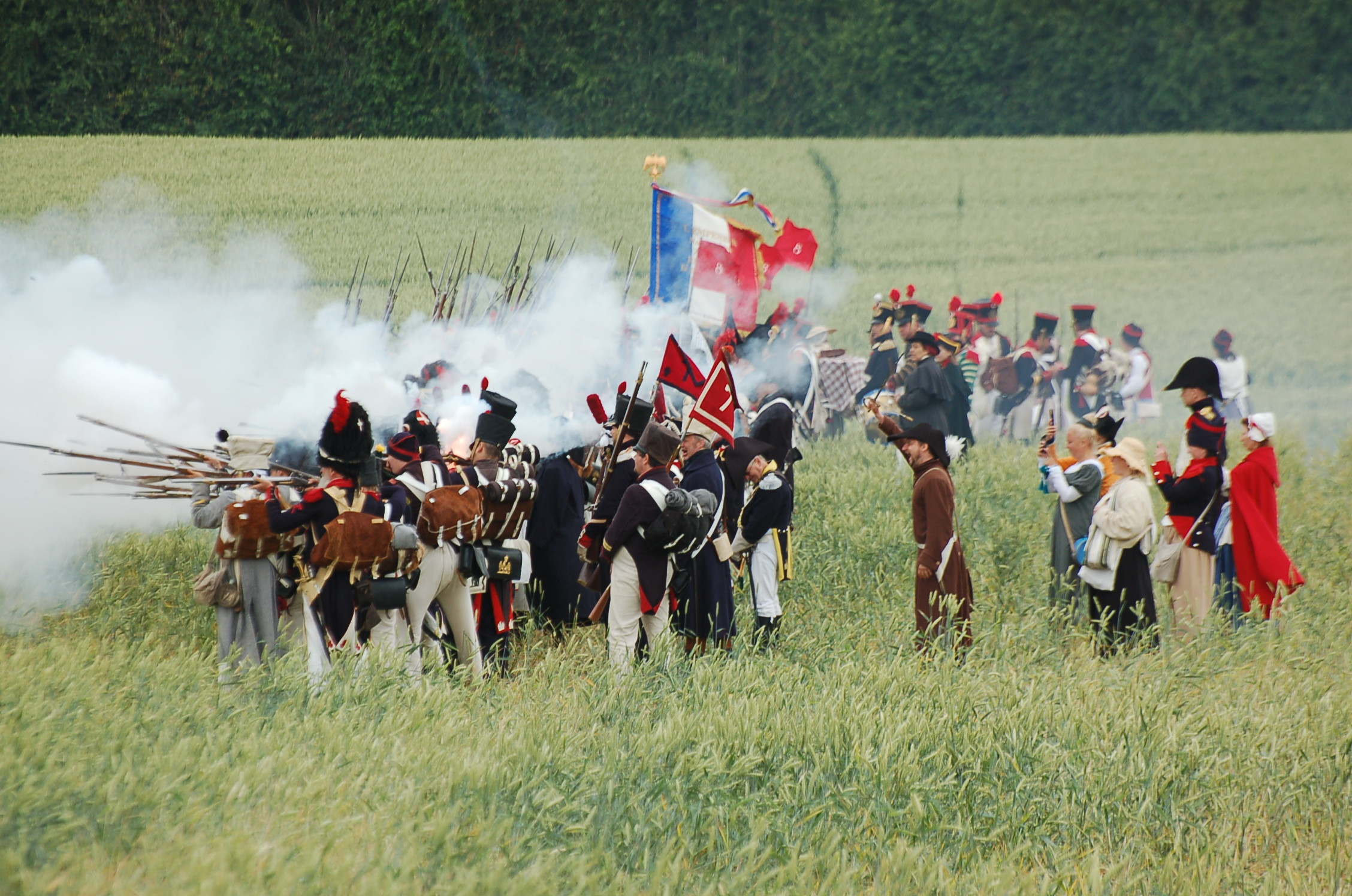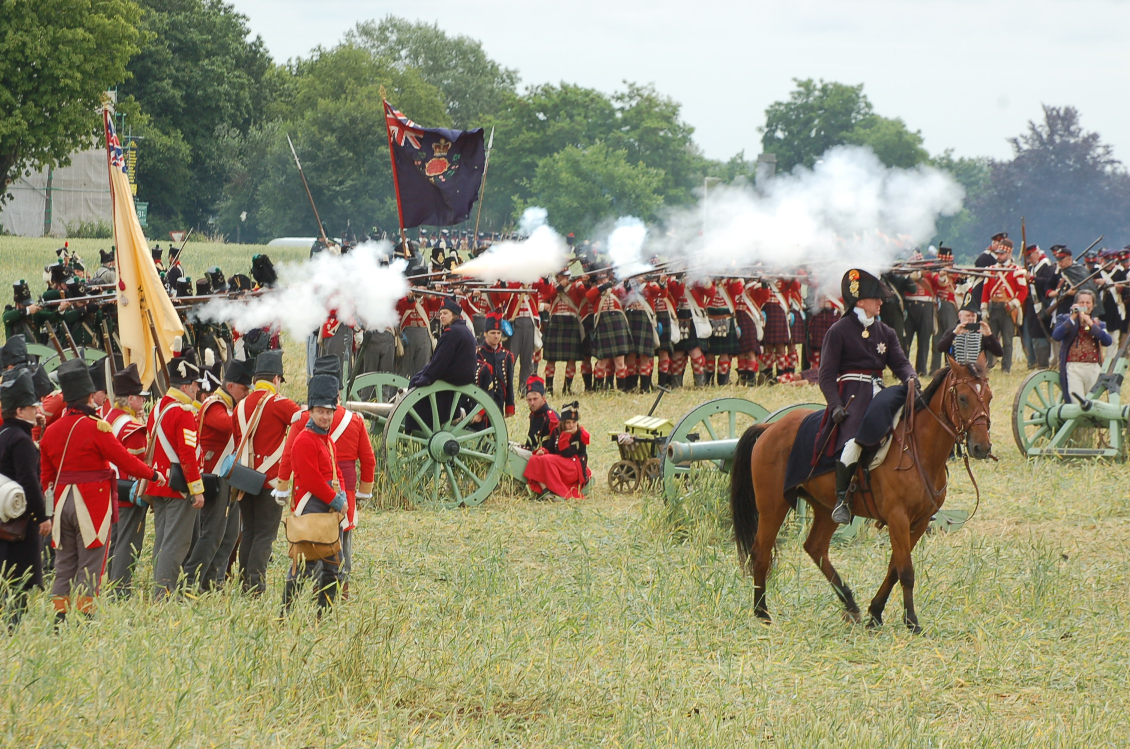La reconstitution historique le matin du 19 juin n'a pas eu lieu sous la pluie même si de lègères gouttes apparurent au terme de la bataille vers midi.