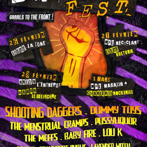 1er GRRR FEST (more girls on stage !) un peu partout en FWB : au Belvédère, Namur, à la Zone, Liège, à l’Entrepôt, Charleroi, au Rockerill, Arlon et au Magasin 4 + Recyclart, Bruxelles, du 26/2 au 1/3.
