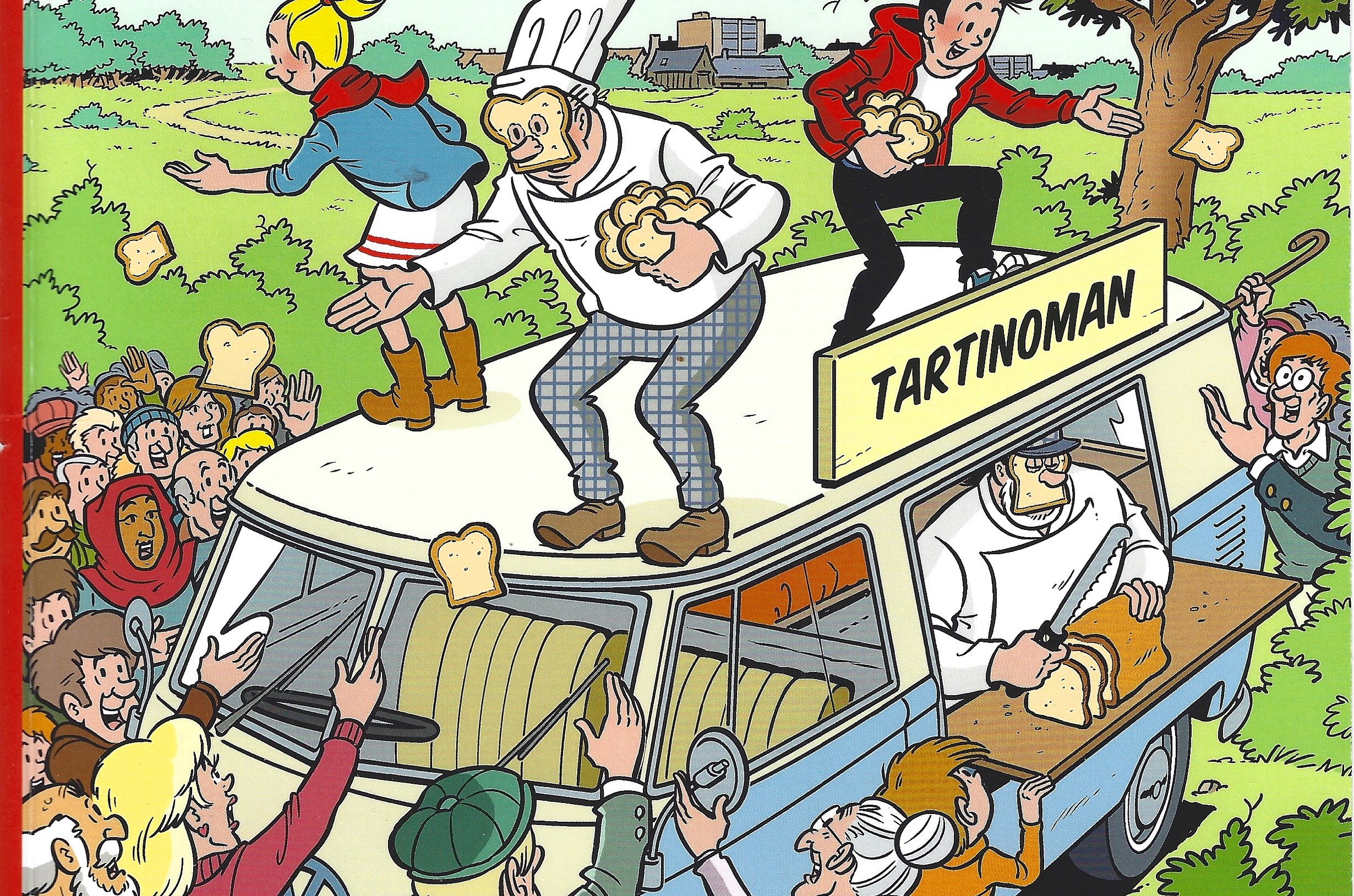 Lambique est profondément touché par cette situation, ce qui ne passe pas inaperçu aux yeux d’un étrange personnage sorti tout droit de l’Egypte antique. Sur ordre de son maître, celui-ci donne à Lambique une graine qui lui permettra de faire du pain à profusion. Lambique mord à l’hameçon et décide de nourrir un maximum de bouches avec cette véritable ‘manne céleste’. Il s’autoproclame Tartinoman et parcourt les rues en distribuant ses délicieux pains à qui veut. L’opération est un immense succès ! Mais comme toute médaille a son revers, Lambique est prié de mettre son orgueil en poche et donc de ne pas se targuer de sa position de bienfaiteur, ce qui jetterait un terrible sort sur le monde. Hélas, quand on s’appelle Lambique et qu’on est acclamé par tous, ce n’est pas chose aisée…