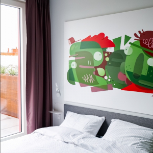 BX. Downtown Hostel se distingue par une identité visuelle forte et un univers artistique omniprésent. Les espaces et les chambres sont décorés d’œuvres réalisées par des artistes belges, transformant l’hostel en véritable lieu de création et d’expression.