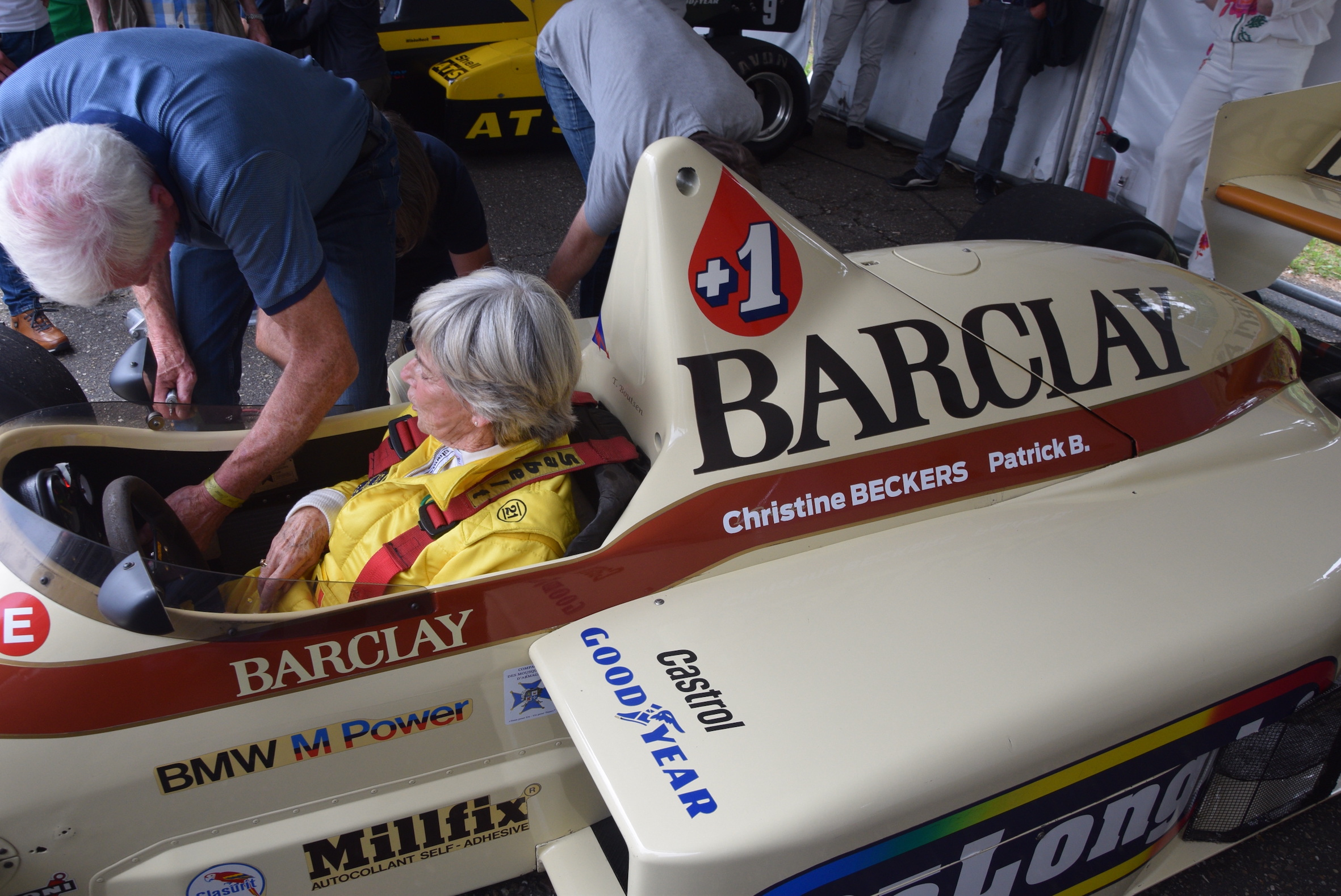 Dus in de bak van een ex-Thierry Boutsen 1.200 pk Arrows A8 BMW Turbo, vertrok ze om een paar rondjes over het circuit van Zolder te rijden, tot grote bewondering van de vele toeschouwers.