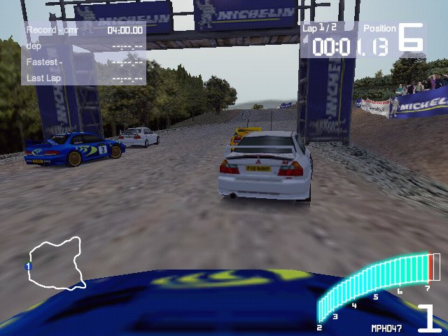 - Le mode arcade vous permettant de rouler à 5 véhicules (4 gérés par l'ordinateur) sur un circuit dédié (Italie, Suède, Finlande, ...), rien de tel n'existe sur les jeux de rallye moderne.