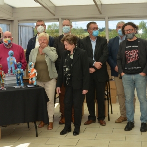 C’ était , il y a plus d’ un an ( Gilles vient de le rappeler à l’ instant), il fallait convaincre la ville ( son bourgmestre, son échevine de la culture) du bien fondé de cette expo. Rassurez-vous, tout de suite, très vite, ils se sont montrés, tout autant, si pas plus, emballés que nous.( Il se passe toujours quelque chose dans Bastogne et ses villages n’ est pas une formule sans relief, la venue des K dolls collait harmonieusement avec ce slogan ). Fixer les dates, les modalités pratiques, le cadre général, la ville a été dès le départ à nos côtés pour finaliser la venue de ces K dolls. Bastogne, assurément un partenaire de choix. Pour cet accueil plus que favorable et cet accompagnement permanent, Mr le bourgmestre, Me l’ Echevine nous avons le plaisir de vous remettre un petit cadeau.