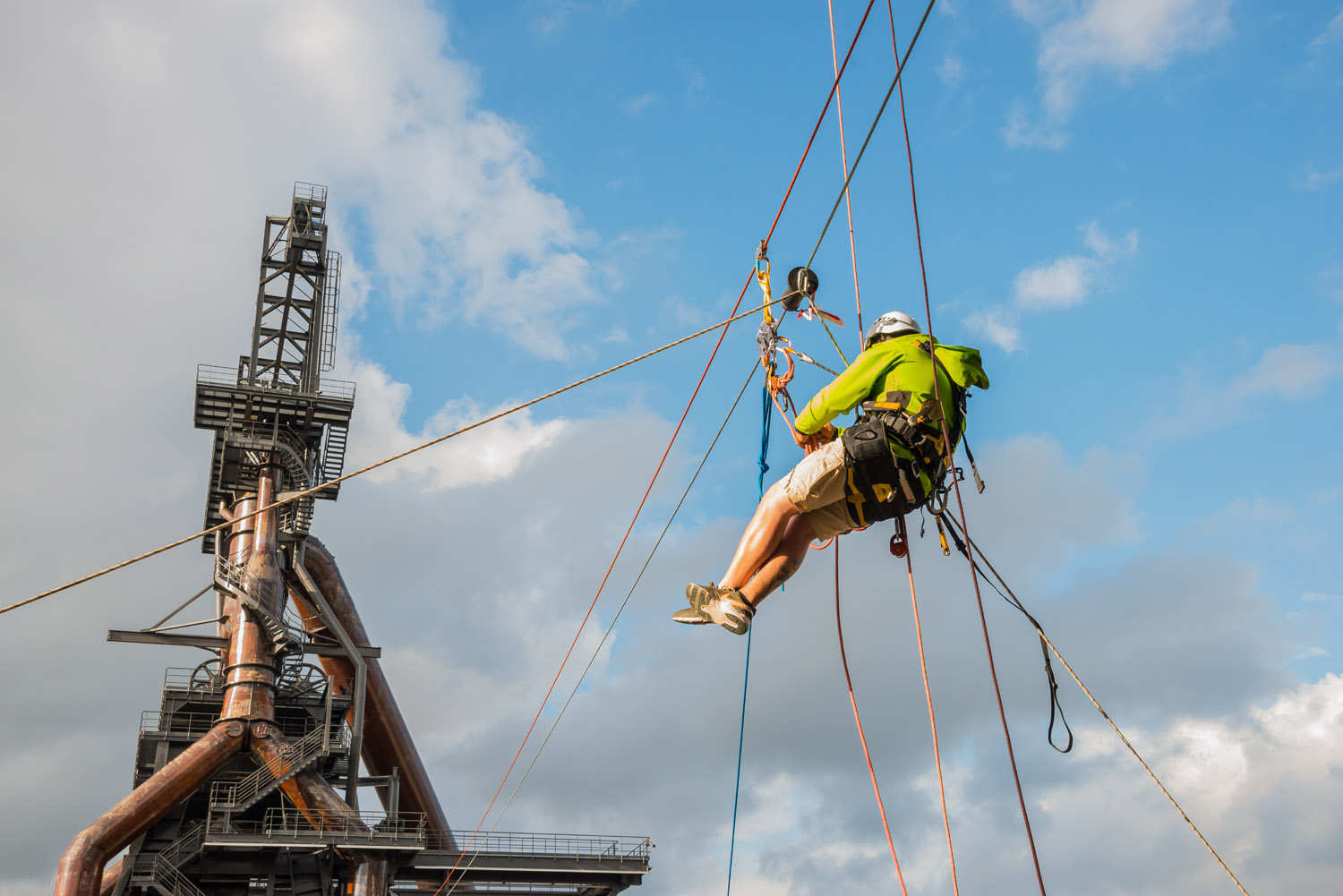 Pour les amateurs de frissons qui oseront se lancer du Haut Fourneau A vers la plateforme du gueulard du Haut Fourneau B, à 60 mètres de hauteur. Une expérience inoubliable.
