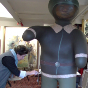Le naturel prenant sans cesse le dessus, Marie-Elise releva derechef ce défi lorsque son chevalet coutumier se vit métamorphoser et prendre du volume en vue de donner corps à une poupée tout en résine et haute de deux mètres quarante !