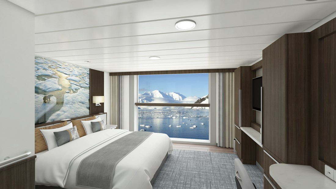 Les cabines de différentes catégories, dont 95% disposent d’un balcon privatif, sont très confortables, aménagées avec goût et décorées de tons neutres s’inspirant de la nature. Outre les bars et le restaurant, de nombreux équipements accueillent les explorateurs au retour de leurs aventures : un amphithéâtre pour les conférences, une bibliothèque, un spa, un sauna et des jacuzzis pour se relaxer ainsi qu’une salle de sport.