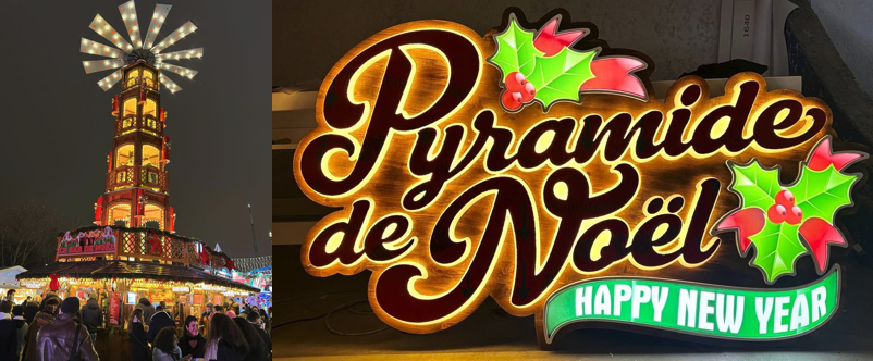 Le Village de Noël s’enrichit d’une nouvelle attraction originale et spectaculaire, une Pyramide de Noël qui culminera à douze mètres de hauteur… L’origine de cette Pyramide, qui concurrence dans la tradition le grand Sapin de Noël, remonte au Moyen âge et nous vient probablement du sud de l’Allemagne, de ces Monts Métallifères au climat rude qui ont vu la naissance de ces structures élevées, faites de plusieurs plateformes fortement décorées accueillant des motifs chrétiens comme la crèche ou les anges entourés de bougies, ou des motifs plus profanes sculptés en bois et représentant des montagnards, des forêts ou des scènes de la vie villageoise. A ces pyramides était souvent associé un mouvement rotatif faisant penser à un carrousel, rappelant le cabestan, sorte de treuil à axe vertical utilisé sur les voiliers ou dans les mines des Monts Métallifères, entre Saxe et Bohême….