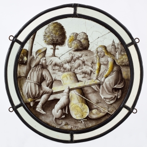 Enfin, l’exposition aborde la question des centres de production. Si, au cours des XVIe et XVIIe siècles, la production de rondels devient une industrie florissante dans les Pays-Bas, leur attribution à l’un ou l’autre atelier, est souvent difficile. Pour distinguer le travail des peintres-verriers actifs à Anvers, Bruges, Gand, Malines, Bruxelles, Louvain, Liège et ailleurs, il faut se baser sur l’iconographie, la technique utilisée et le style, ou encore la provenance des pièces.