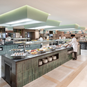 À l’extérieur, la quasi-totalité des piscines a cédé la place à des bassins entièrement neufs, aux tailles et formes variées. En outre, les solariums autour des piscines ont été agrandis pour accueillir des espaces de chaises longues et des zones protégées par des stores déroulants qui permettent aux clients d’adapter leur exposition à leurs besoins.