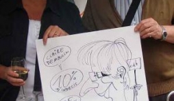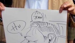 A Sallanches au pied du Mont-Blanc en France les commerçants sont caricaturés sur leur vitrine pa