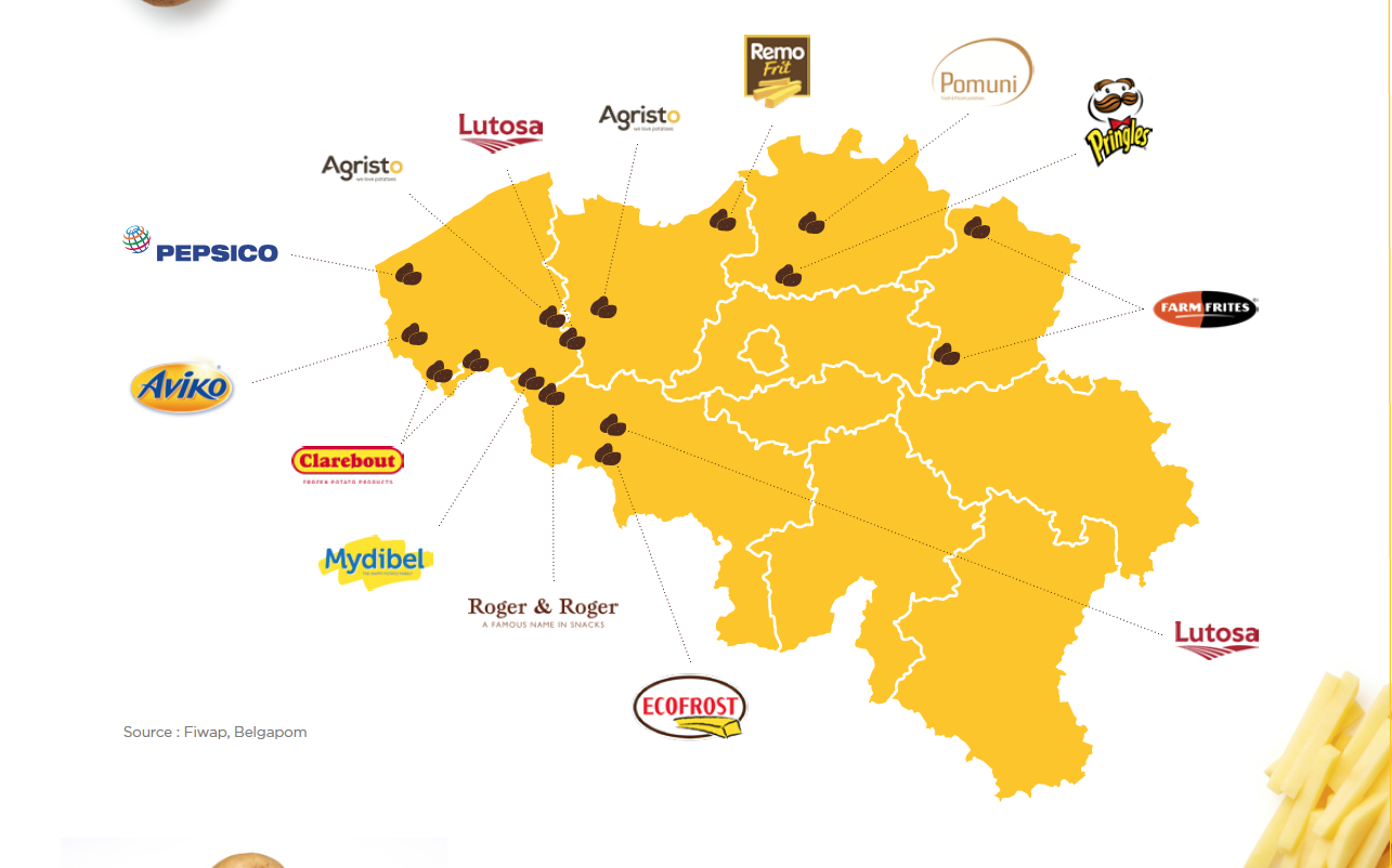 En termes de transformation de la pomme de terre, la Belgique regroupe une vingtaine d’entreprises très dynamiques dont les plus importantes sont établies en Wallonie. Cette activité de transformation valorisant les pommes de terre de chez nous connait une croissance régulière depuis 20 ans et permet de produire : 2 millions de tonnes de frites par an ; ± 500.000 tonnes par an de divers autres produits tels que les chips, purées, croquettes, flocons. La Belgique est devenue récemment le premier exportateur mondial de produits à base de pommes de terre. Les frites belges se vendent dans plus de 150 pays à travers le monde. La valeur des exportations dépasse les 2 milliards d’euros par an (pour la Belgique).