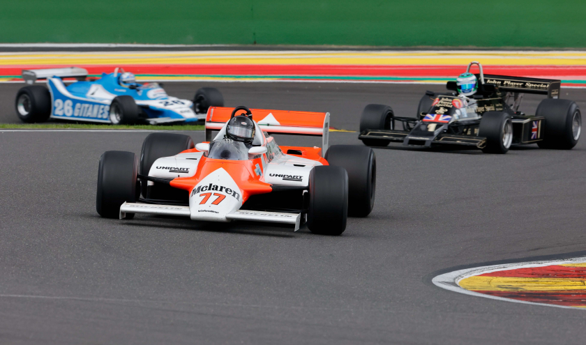 Quant aux décennies ’70 et ’80, elles furent réunies au sein d’un plateau Masters Racing Legends de toute belle facture, avec des Lotus, Williams, Tyrrell, McLaren, Brabham, Arrows, Fittipaldi, Ligier, March, Shadow, Hesketh, Ensign, LEC, Theodore et Trojan. Quant aux pilotes qui ont tenté de revendiquer la gagne à Spa-Francorchamps, ils ont pour noms Thierry Boutsen (triple vainqueur en Grand Prix, Shadow), Nick Padmore (ex-champion F1 historique), Christophe et Werner D’Ansembourg, mais aussi Victor Jabouille, fils du regretté Jean-Pierre Jabouille, et Stéphane De Groodt, humoriste et acteur belge à l’impressionnante carrière artistique, qui pilota une March 741 de 1974 ex-Wisell.