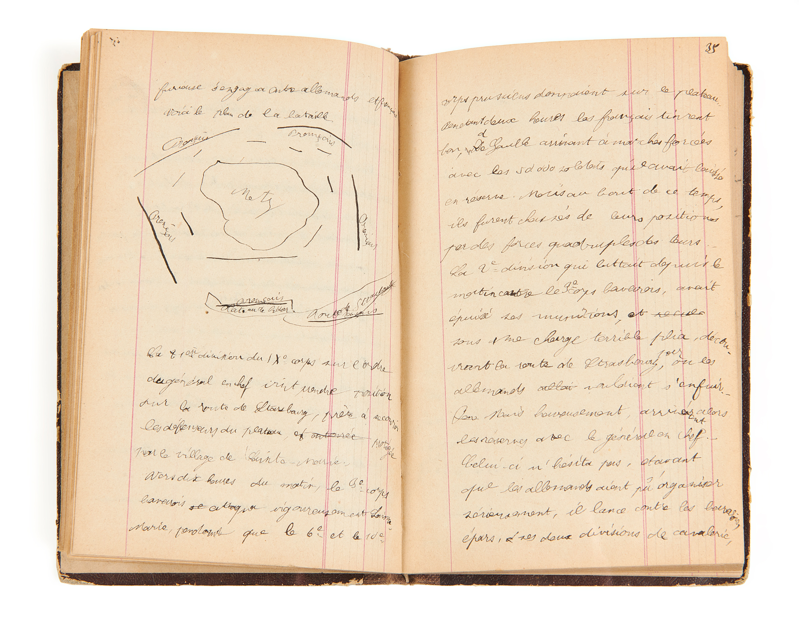 Egalement, un écrit de jeunesse, rédigé alors qu’il n’a que 14 ans, illustrant son hésitation entre une carrière littéraire ou militaire : la nouvelle Campagne d’Allemagne, mettant en scène un général de Gaulle (!) libérant la France de l’envahisseur allemand (est. 10 000 - 15 000 €).