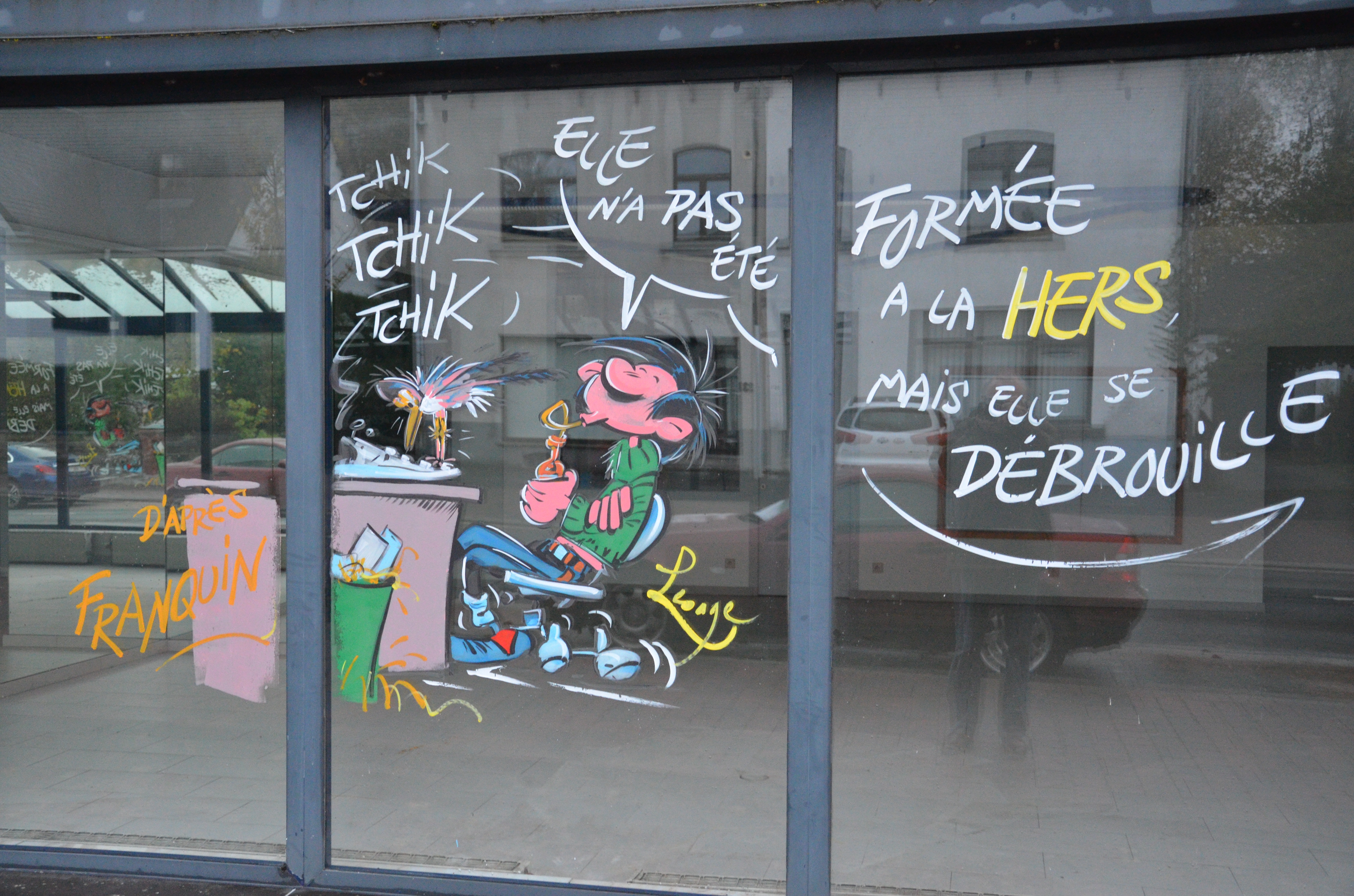- Libramont. Peinture sur vitrines pour la quinzaine de la BD